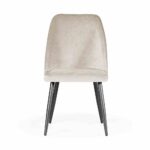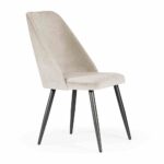 Klasična tapecirana stolica modernog oblika s glatkim naslonom. Bezvremenski dizajn znači da će se stolica, ovisno o odabranoj tkanini i boji nogu, uklopiti u svaki interijer.