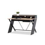 Još jedno izdanje stilskog stola koji se ističe zahvaljujući svom bezvremenskom dizajnu, zahvaljujući tri odjeljka i diskretno postavljenoj praktičnoj ladici koja vam omogućuje pohranjivanje malih predmeta. Tijelo stola u prekrasnoj hrastovoj boji savršeno se uklapa uz jake i stabilne crne noge, koje će privući pozornost svake osobe svojim jedinstvenim oblikom.