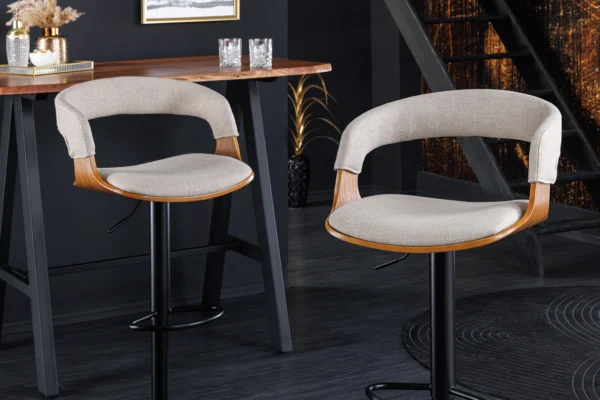 Barska stolica Amaya kombinira modernu eleganciju s praktičnom funkcionalnošću, što je čini idealnim izborom za svaki suvremeni prostor. Izrađena od vrhunske kombinacije izdržljivog metala, prirodnog jasenovog drva i tkanine, ova stolica impresionira svojom izdržljivošću i udobnošću. Dizajn postolja omogućuje podešavanje visine između 64 i 85 cm, savršeno se prilagođavajući raznim visina šanka ili radne ploče.
