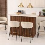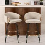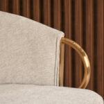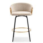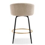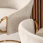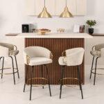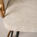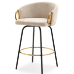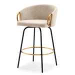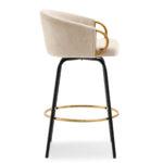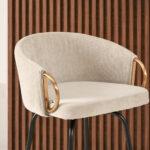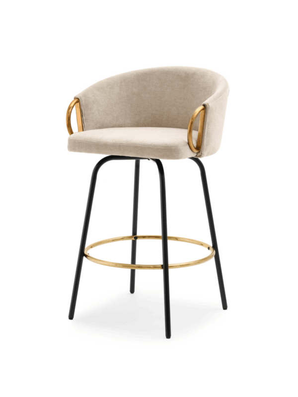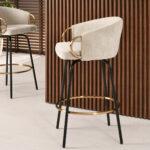 Barska stolica Claire elegantan je model prepoznatljiv po decentnim ručkicama za pomicanje ukorporiranima u rukonaslone, kao i strukturalnom tkaninom. Konstrukcija je crna i zlatna, što u kombinaciji s mekim materijalima stolici pruža dodatan sjaj.