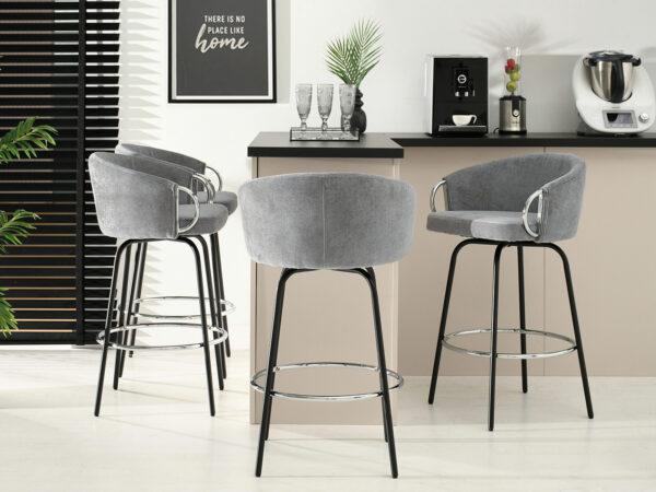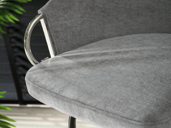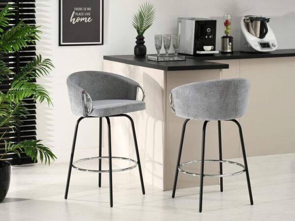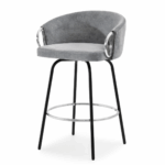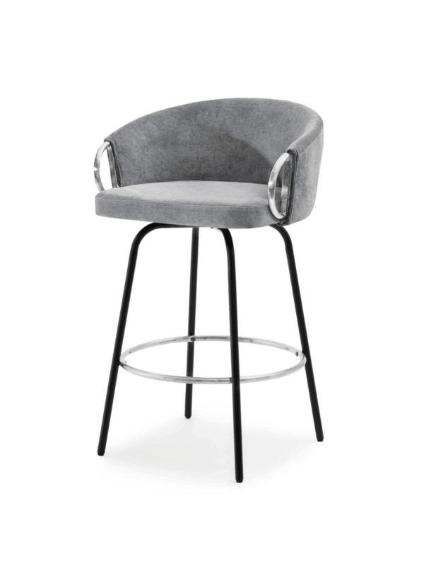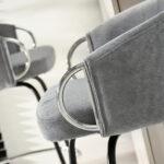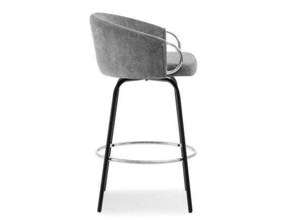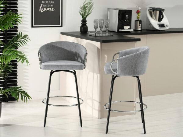 Barska stolica Claire elegantan je model prepoznatljiv po decentnim ručkicama za pomicanje ukorporiranima u rukonaslone, kao i strukturalnom tkaninom. Konstrukcija je crna i srebrna, što u kombinaciji s mekom tkaninom stolici pruža dodatan sjaj.