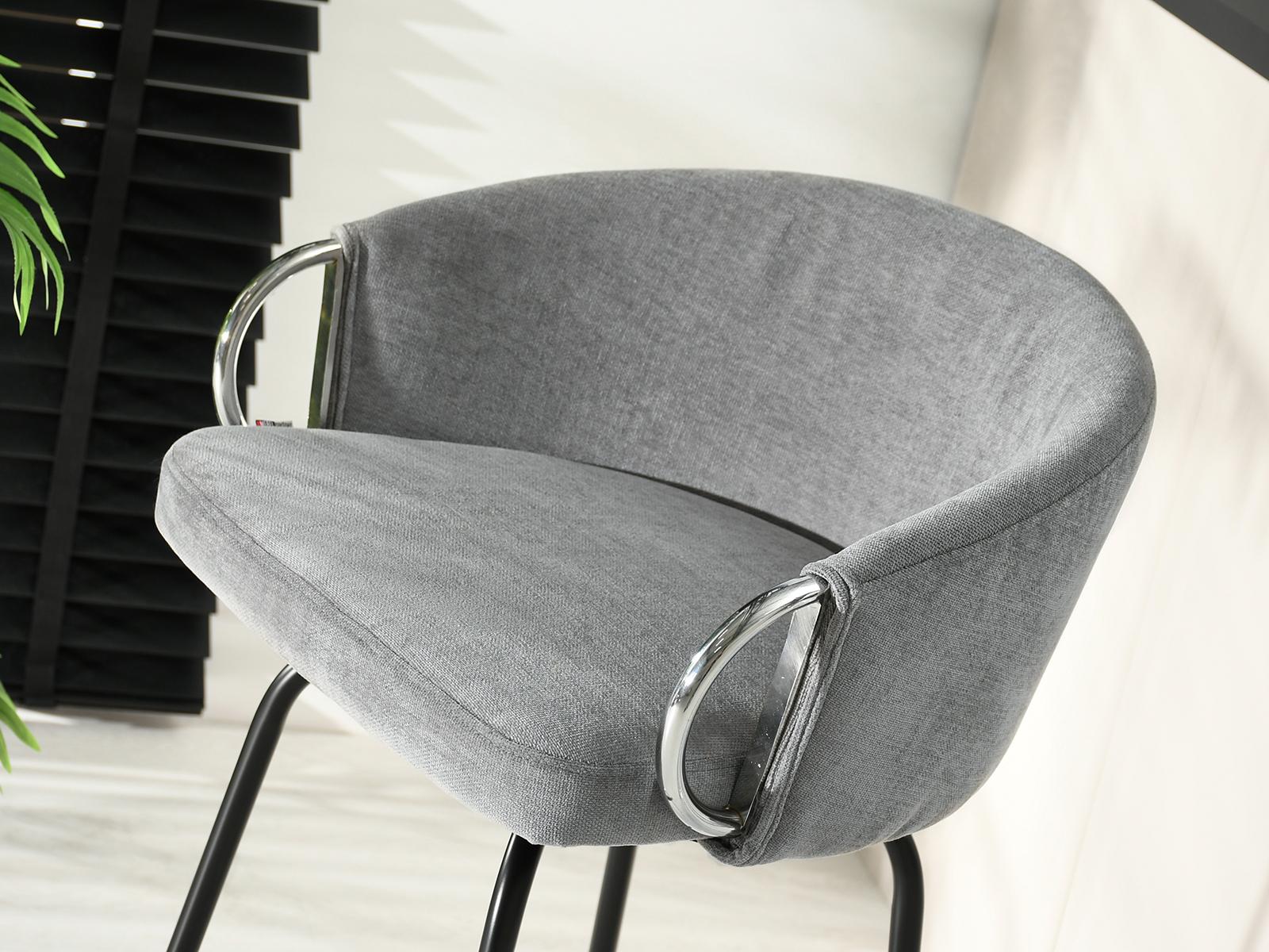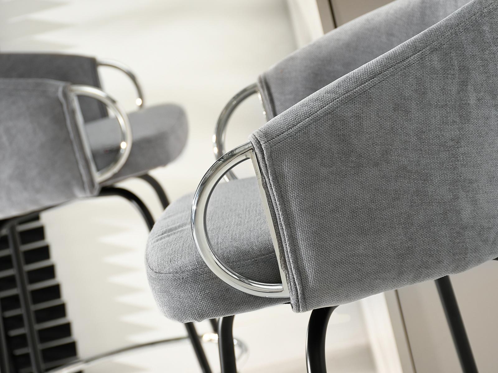 Barska stolica Claire elegantan je model prepoznatljiv po decentnim ručkicama za pomicanje ukorporiranima u rukonaslone, kao i strukturalnom tkaninom. Konstrukcija je crna i srebrna, što u kombinaciji s mekom tkaninom stolici pruža dodatan sjaj.