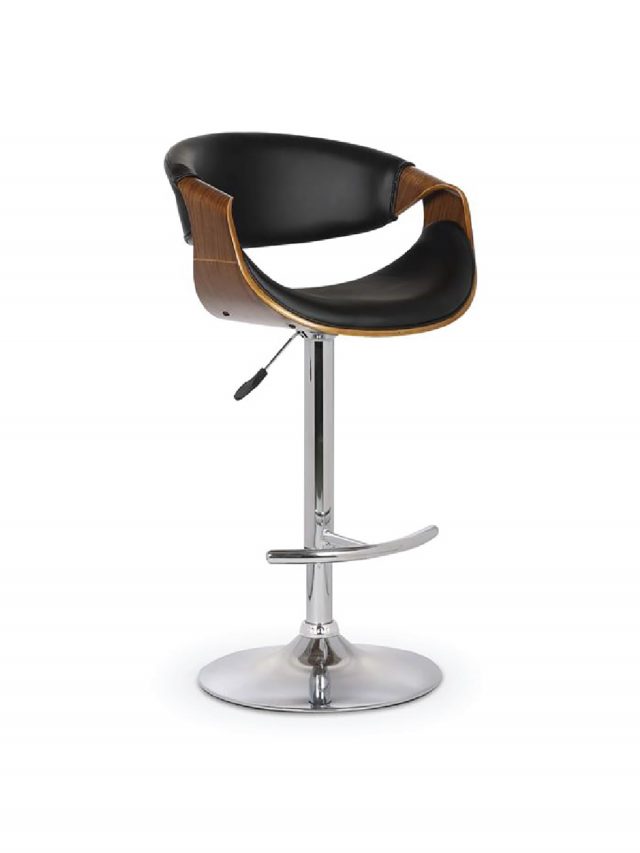 Polubarska stolica spaja klasičan izgled s modernim, ističući se prekrasnim dizajnom koji uključuje furniran hrast vidljiv s vanjske strane naslona. Naslon i sjedište presvučeni su vintage crnom eko kožom. Sjedište ove polubarske stolice visoko je 64 cm.