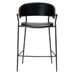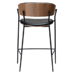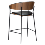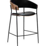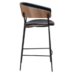 Polubarska stolica spaja klasičan izgled s modernim, ističući se prekrasnim dizajnom koji uključuje furniran orah vidljiv s vanjske strane naslona. Naslon i sjedište presvučeni su vintage crnom eko kožom. Sjedište ove polubarske stolice visoko je 64 cm.