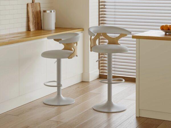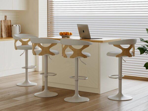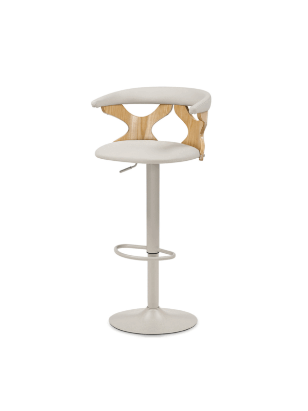 Barska stolica Daisy je elegantno i funkcionalno rješenje, savršeno za kuhinjski otok ili šank s visokim pultom. Podesiva visina i udoban naslon osiguravaju udobnost čak i tijekom duljeg sjedenja. Moderan dizajn, koji kombinira metalnu bazu s drvenim elementima i mekim sjedalom od eko kože, savršeno se uklapa u moderne i skandinavske interijere.