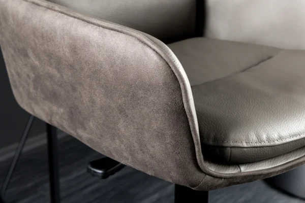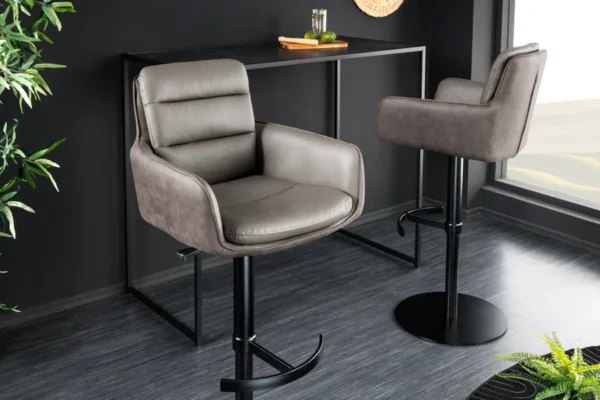 Barska stolica Duro sofisticiran je dodatak svakom prostoru. Čvrsto crno metalno postolje s podesivom visinom pruža potporu, čineći stolicu savršenom za svaki šank ili otok.