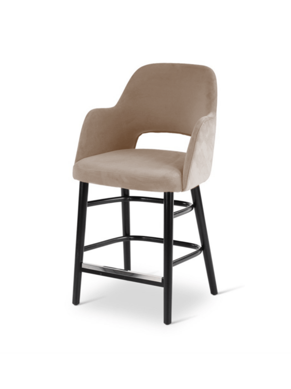 Barska stolica Eva pruža profinjenu udobnost u kompaktnim dimenzijama, idealna za restorane, barove, hotele, kao i domove.
