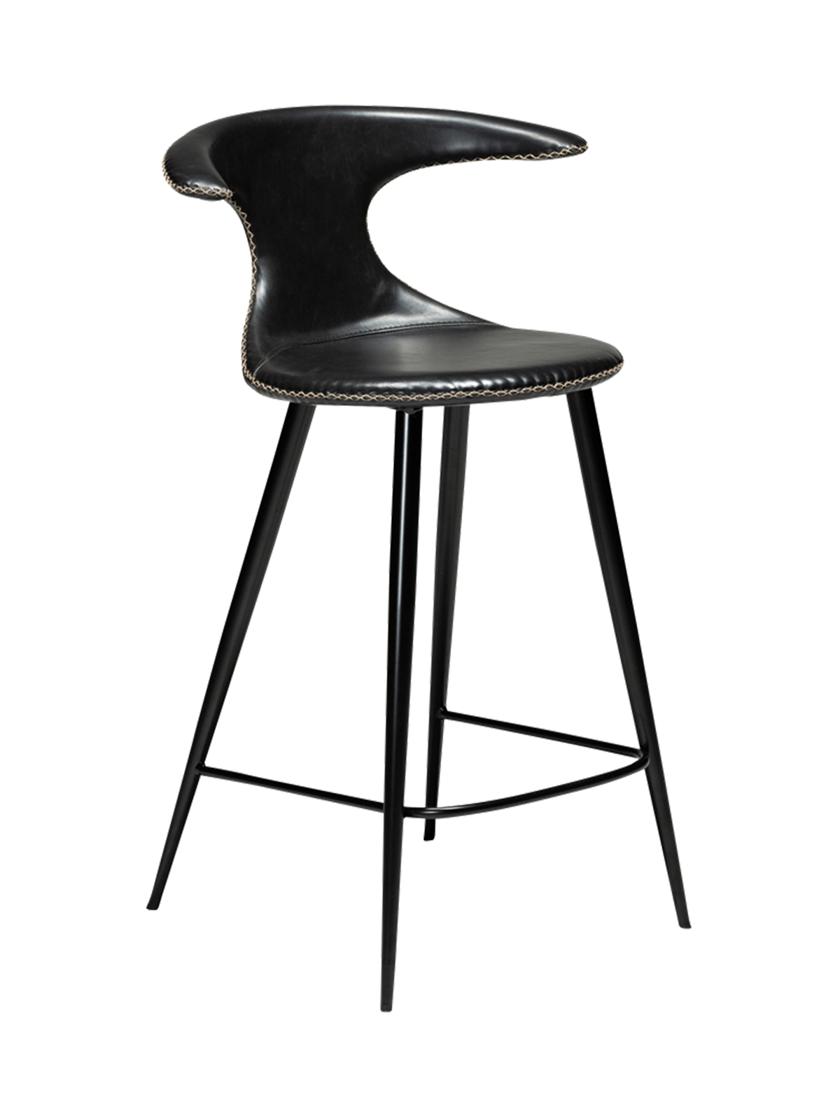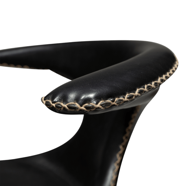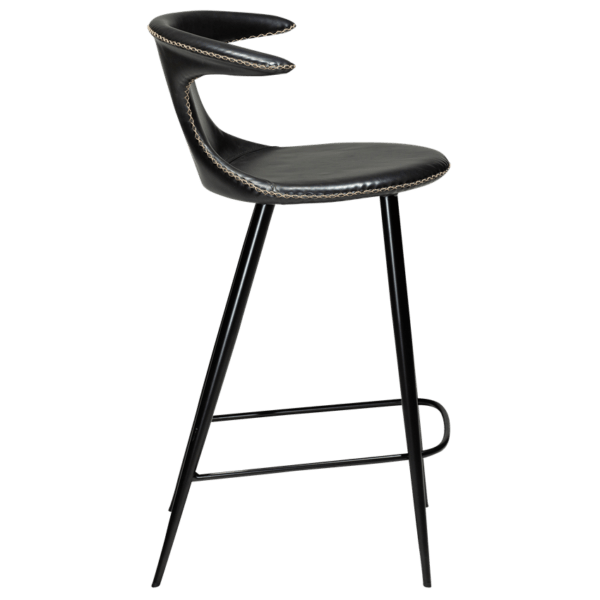 Ova polubarska stolica kombinira suvremeni, luksuzni i nordijski stil s udobnošću. Njezino sjedište visoko je 67,5 cm i presvučeno je umjetnom kožom vintage crne boje, a metalne noge dolaze također u crnoj boji.
