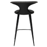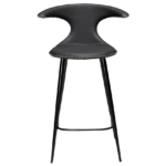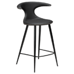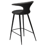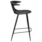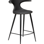 Ova polubarska stolica kombinira suvremeni, luksuzni i nordijski stil s udobnošću. Njezino sjedište visoko je 67,5 cm i presvučeno je kožom crne boje, a metalne noge dolaze također u crnoj boji.