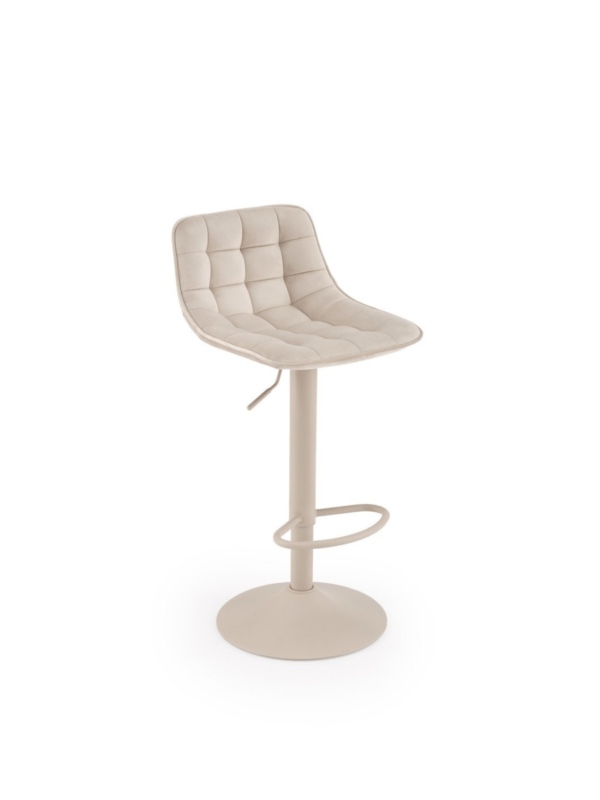 Barska stolica ugodne tkanine s prošivima i crnim rotirajućim postoljem pristajat će u interijere i ugostiteljske objekte.