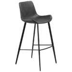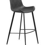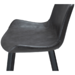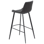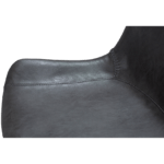 Ova barska stolica se ističe prepoznatljivim oblikom sjedala s detaljima poput šavova. Stolica je presvučena vintage sivom eko kožom te stoji na metalnim nogama crne boje.