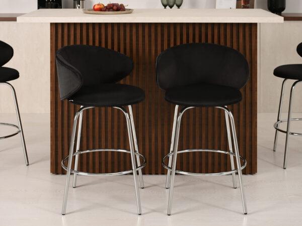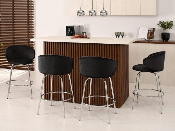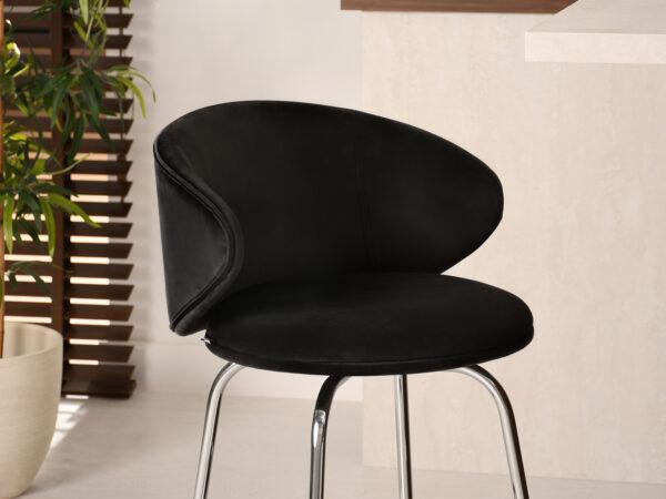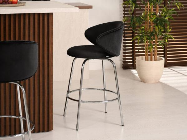 Barska stolica Kohut savršena je za ljubitelje ekspresivnog dizajna. Presvlaka od baršuna dodaje dašak elegancije svakom interijeru, dok vitke crne noge osiguravaju stablinost.