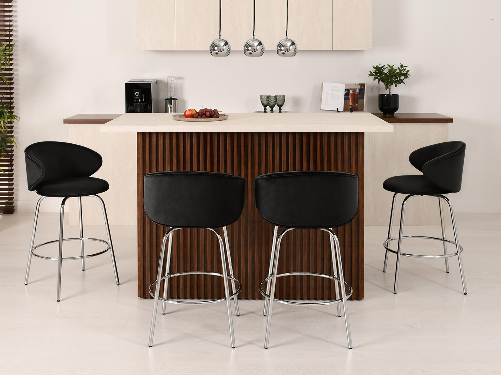 Barska stolica Kohut savršena je za ljubitelje ekspresivnog dizajna. Presvlaka od baršuna dodaje dašak elegancije svakom interijeru, dok vitke crne noge osiguravaju stablinost.