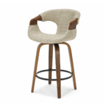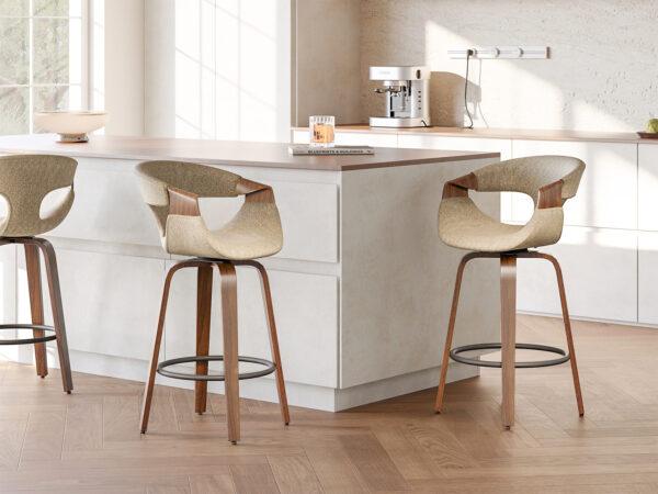 Polubarska stolica Linus ima okretno sjedalo koje pruža slobodu kretanja. Ergonomski naslon od savijenog drva povećava udobnost, omogućujući opuštanje čak i tijekom duljih razdoblja.