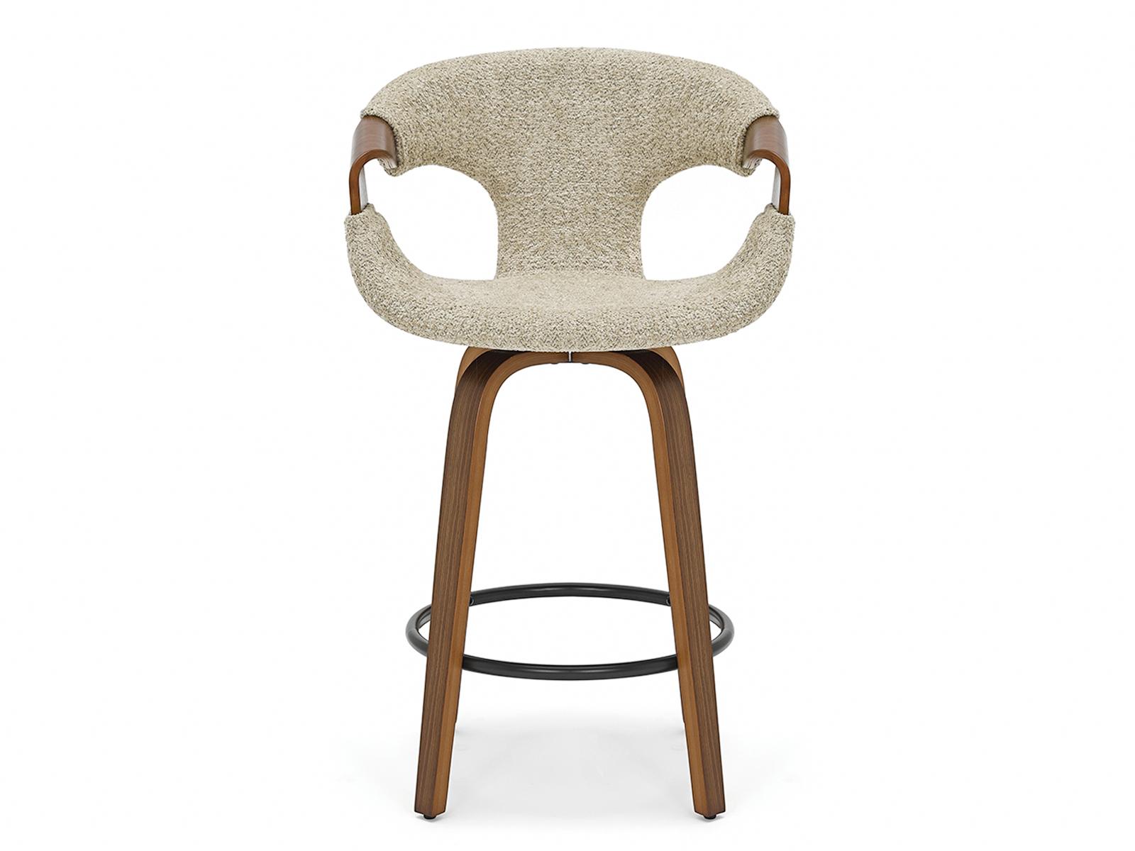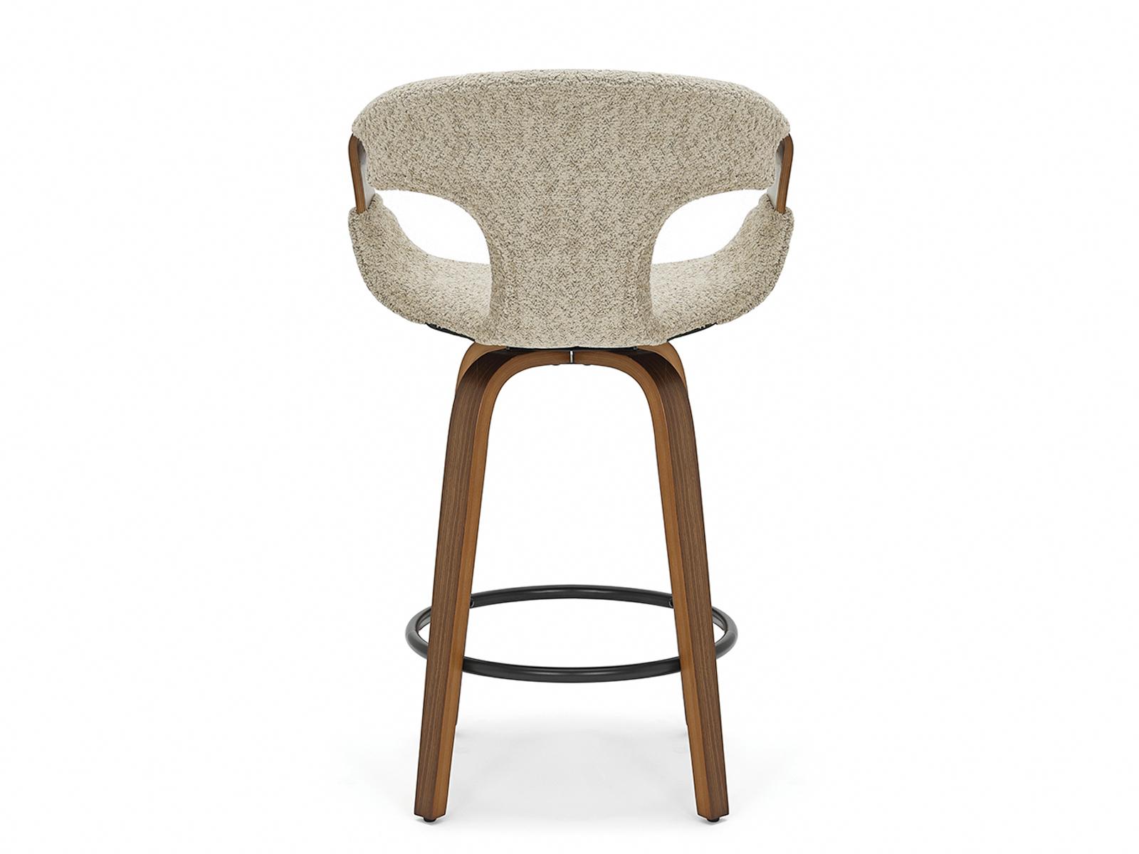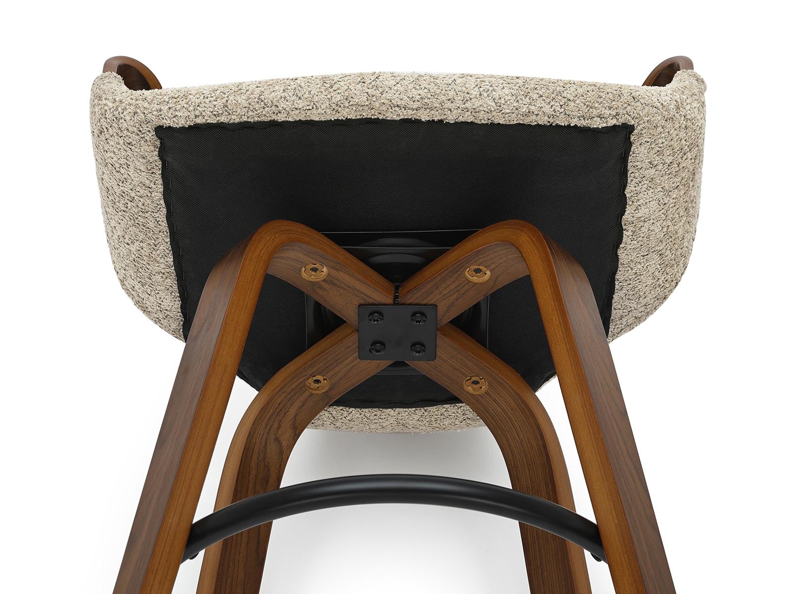 Polubarska stolica Linus ima okretno sjedalo koje pruža slobodu kretanja. Ergonomski naslon od savijenog drva povećava udobnost, omogućujući opuštanje čak i tijekom duljih razdoblja.
