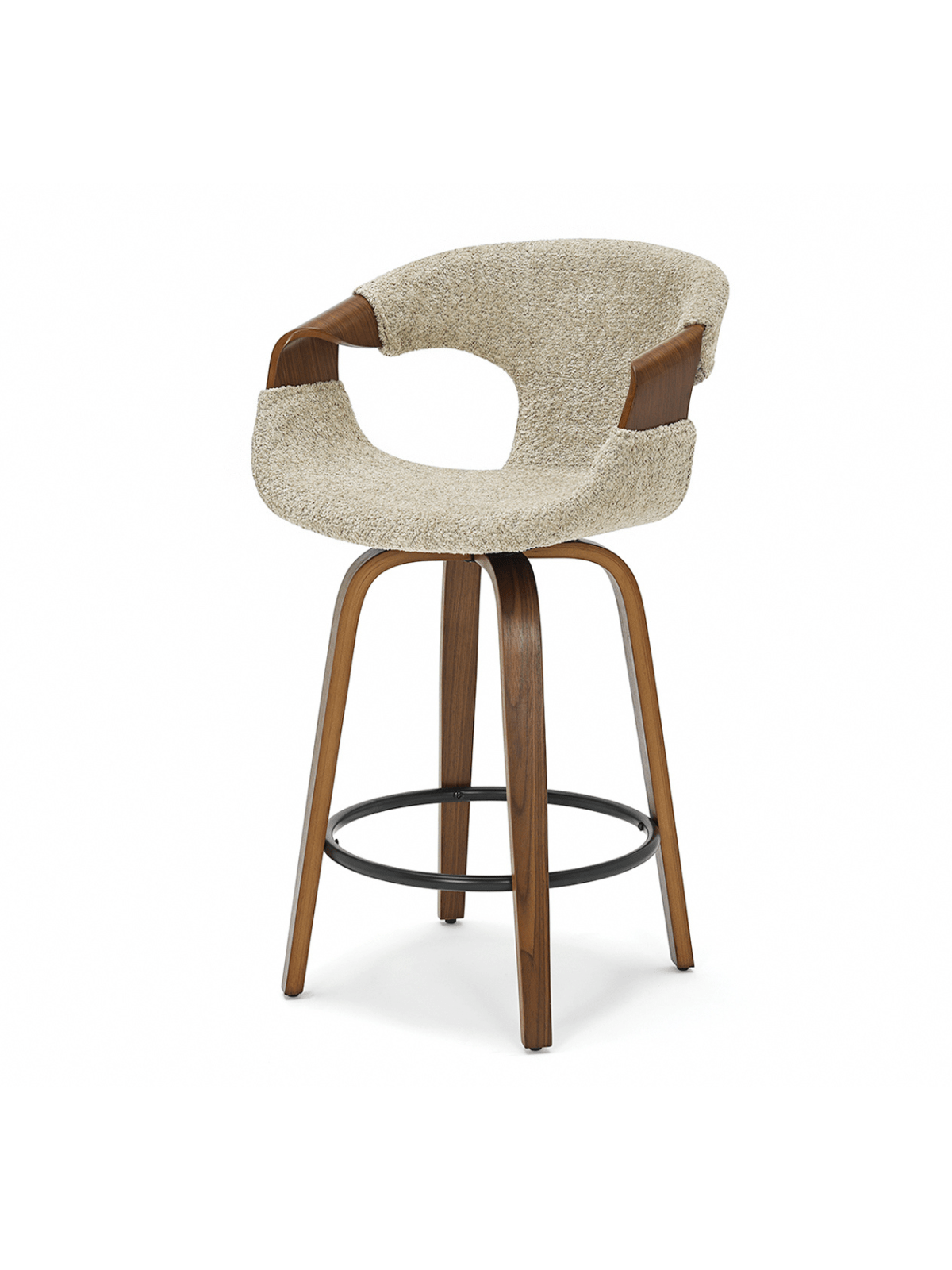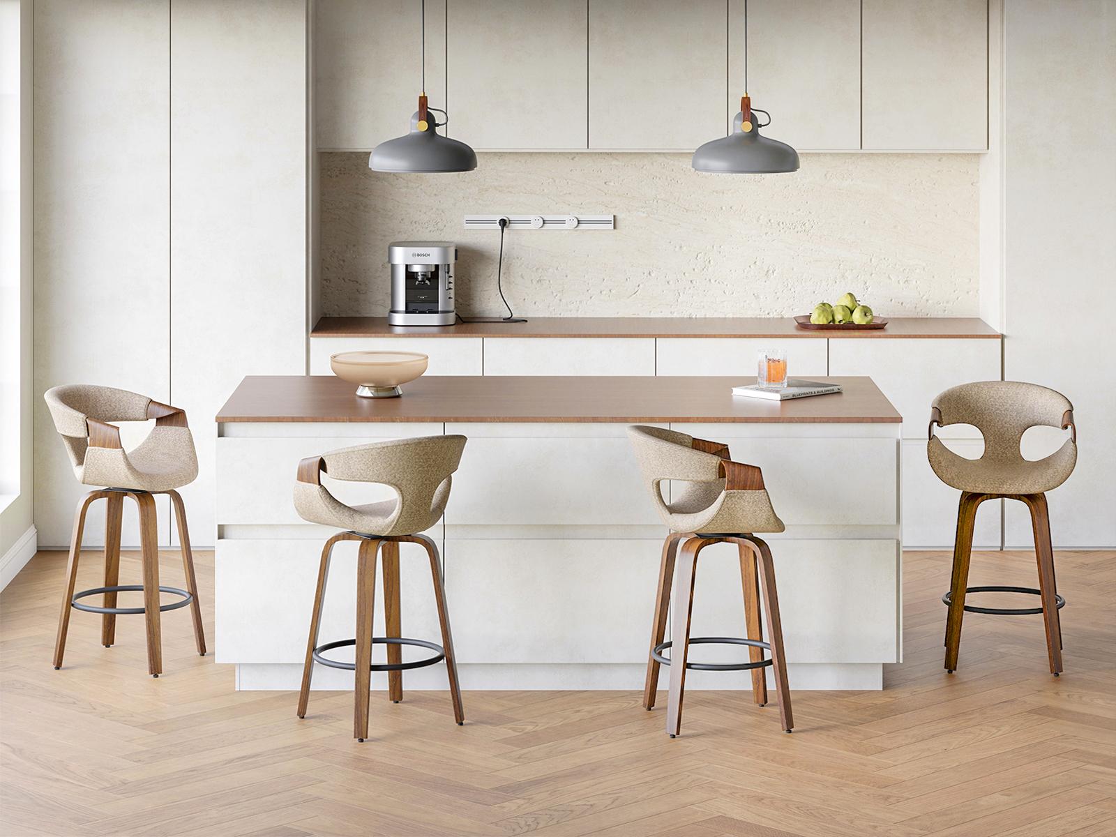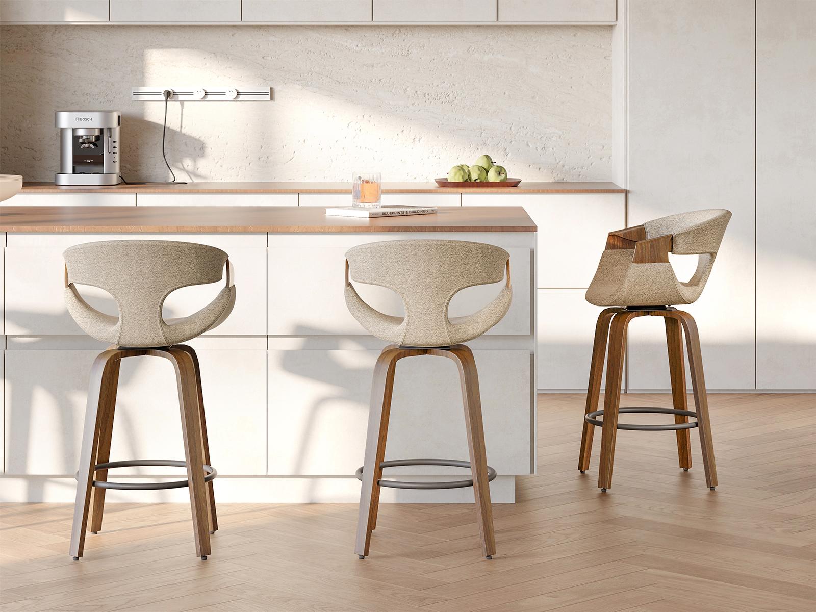 Polubarska stolica Linus ima okretno sjedalo koje pruža slobodu kretanja. Ergonomski naslon od savijenog drva povećava udobnost, omogućujući opuštanje čak i tijekom duljih razdoblja.