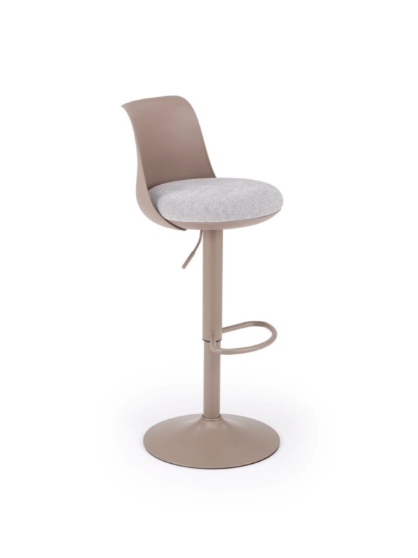 Moderna stolica s podesivom visinom na hidraulični mehanizam kombinira funkcionalnost i suvremeni dizajn. Sjedalo od polipropilena s presvlakom od tkanine pruža udobnost, dok čelična baza s praškastim premazom osigurava stabilnost i dugotrajnost. Idealna za radne i blagovaonske prostore.