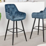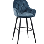 Barska stolica Melania jednostavnog dizajna presvučena je baršunastom navlakom plave boje te stoji na metalnom postolju crne boje što daje dodatnu notu elegancije ovom komadu namještaja.