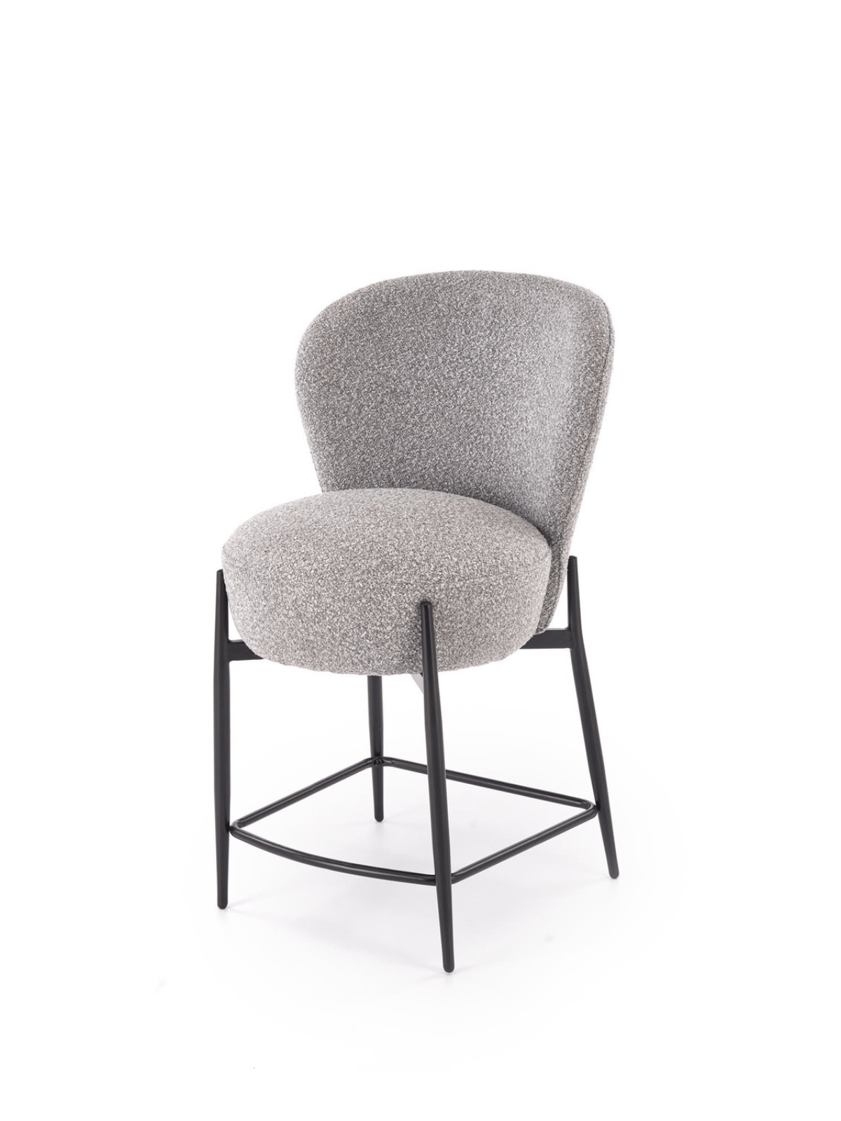 Polubarska stolica modernog dizajna presvučena je mekanom tkaninom bouclé teksture koja pruža ugodan i sofisticiran izgled. Ergonomski oblik sjedala osigurava udobnost pri sjedenju, dok stabilna konstrukcija i čvrste noge garantiraju dugotrajnost. Idealan izbor za kuhinjske otoke i moderne interijere.