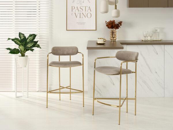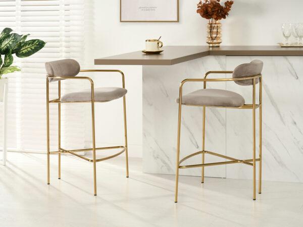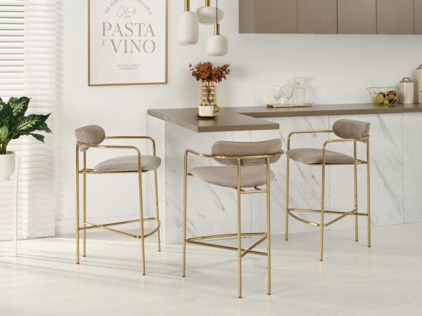 Barska stolica Odissa Gold naglašene pravilne konstrukcije u crnome metalu idealna je za sve ljubitelje geometrijskoga namještaja, pa i secesije. Stilski obilježena stolica dolazi u pet nijansi tapeciranoga naslona i sjedišta.