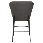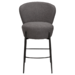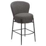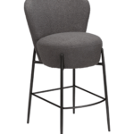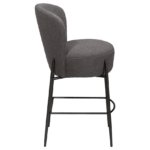 Ova polubarska stolica ima luksuzan izgled s okruglim, mekanim sjedalom i naslonom presvučenim tamno sivom recikliranom boucle tkaninom. Elegantan dizajn stolice ističu metalne noge boje starinskog mesinga koje dodaju dodir sofisticiranosti i podižu cjelokupan dizajn.