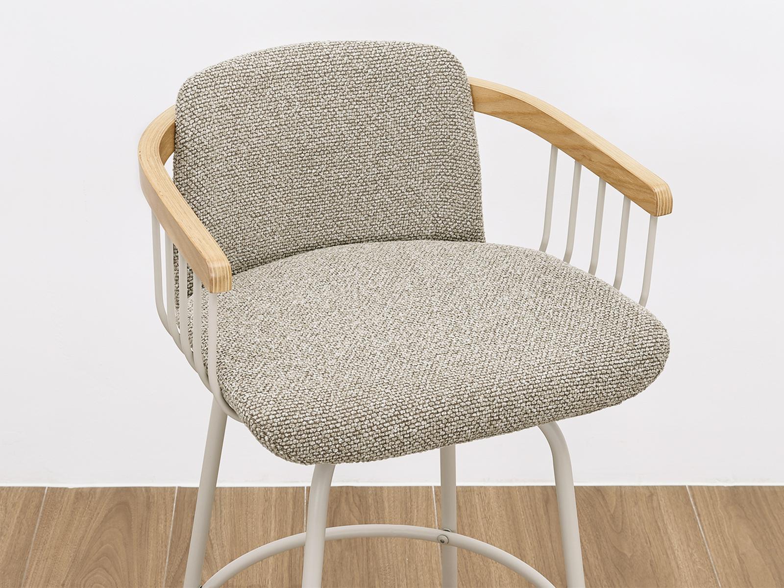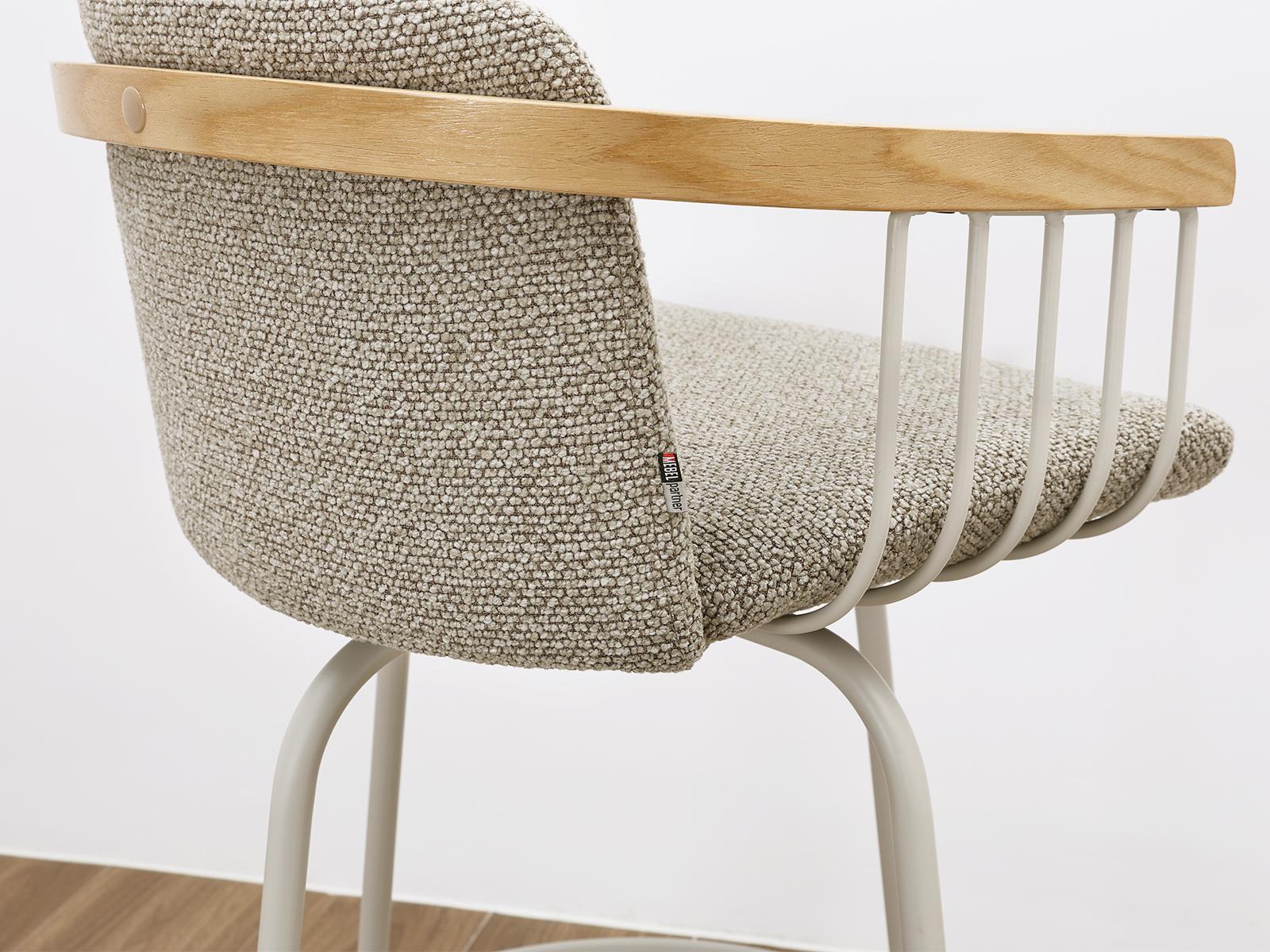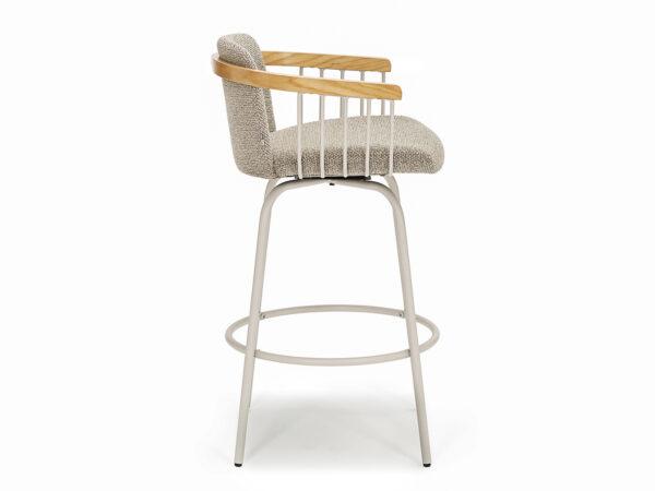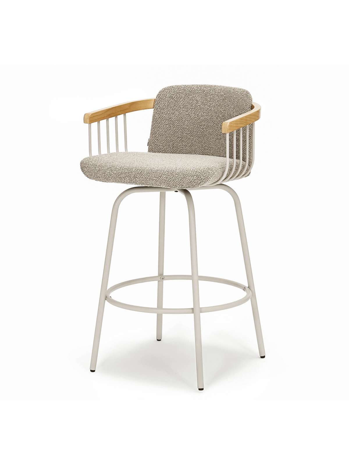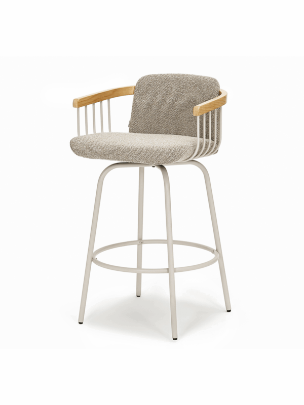 Odabirom barske stolice Ribs ulažete u udobnost, izdržljivost i moderan dizajn. Ovaj model kombinira praktične značajke, poput okretnog sjedala i minimalističkih, otvorenih rukonaslona, s estetikom prirodnog hrastovog drva i elegantne tkanine.