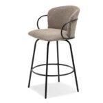 Barska stolica SIMONA odlikuje se ne samo elegantnim dizajnom, već i jedinstvenim materijalom kojim je presvučeno njezino sjedište. Presvlake sašivene od bouclea daju jedinstveni šarm i suptilnost, dok boje presvlaka dodaju svježinu i lakoću interijeru. Pritom se slažu s različitim stilovima uređenja interijera. Elegantna tekstura tkanine ugodna je na dodir i pružit će udobnost pri korištenju stolice. Četveronožna crna metalna baza također je važan element dizajna koji značajno utječe na stabilnost stolice, pružajući optimalnu potporu sjedalu.