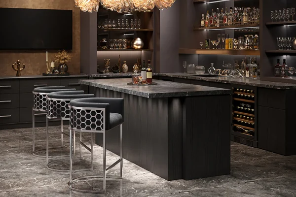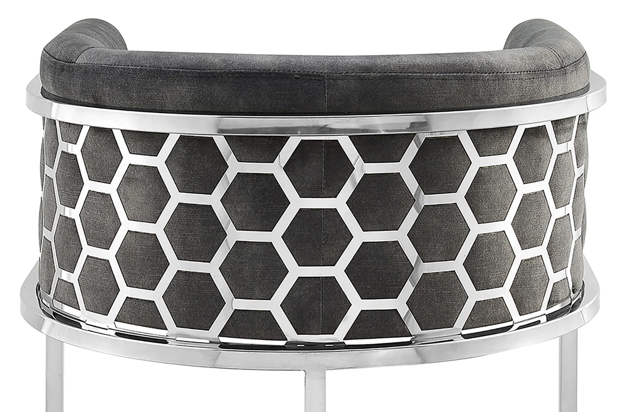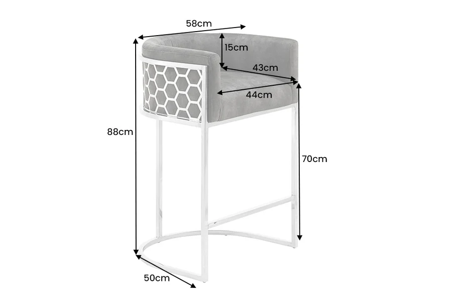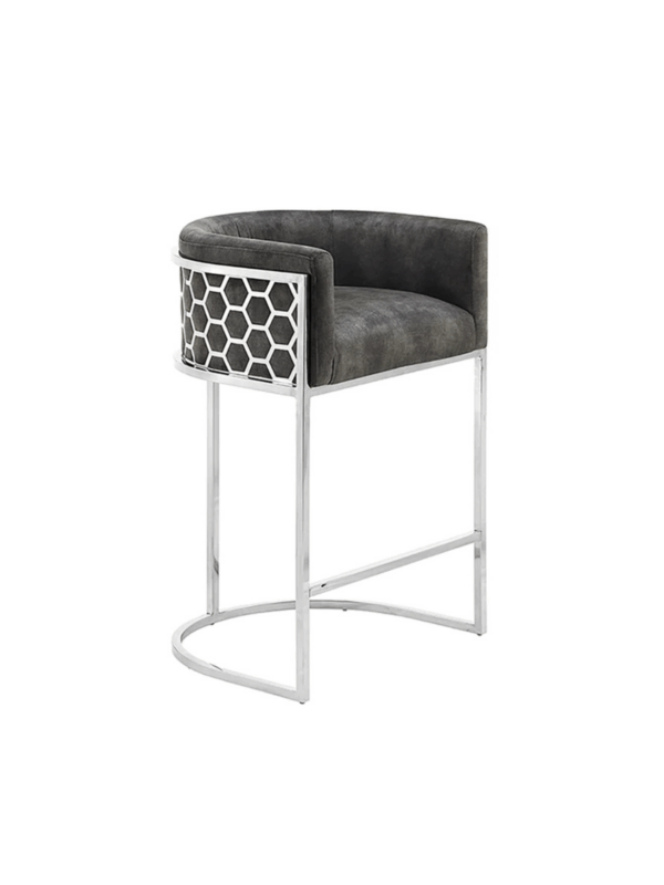 Barska stolica Sonia s plišanim sivim baršunom i elegantnim srebrnim okvirom dat će dašak nenametljivog luksuza vašem šanku.