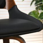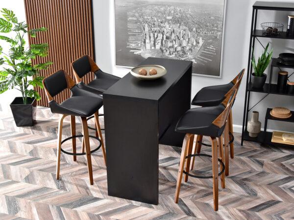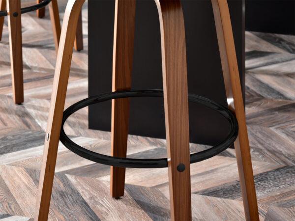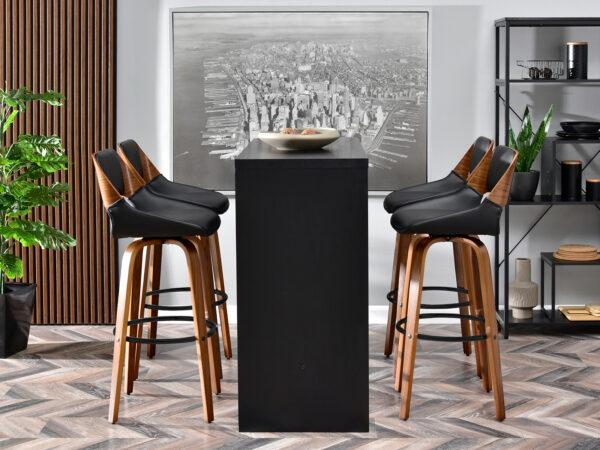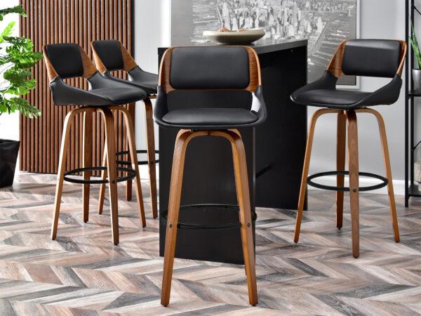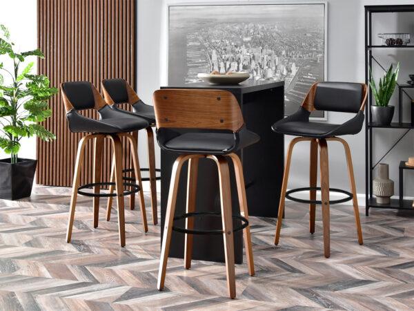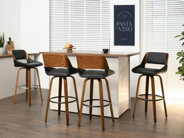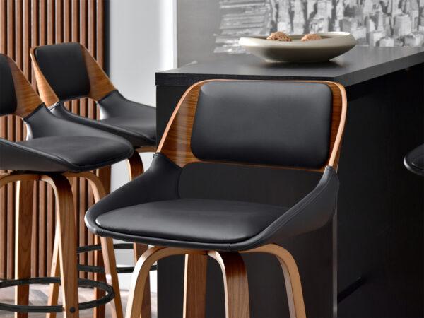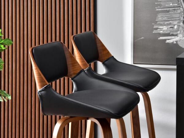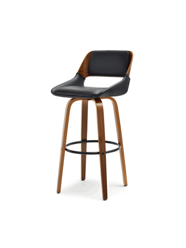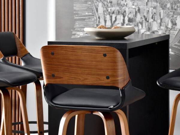 Barska stolica Tadio jedinstvena je kombinacija elegantnog drva i moderne presvlake od eko kože. Opremljena okretnim sjedalom, nudi udobnost i funkcionalnost, savršenu za kuhinje, blagovaonice ili čak barove. Čvrsta konstrukcija i ergonomski naslon jamče udobnost čak i tijekom dulje upotrebe.