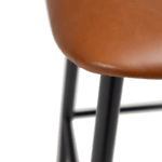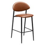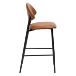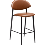 Ova polubarska stolica očarava svojim jednostavnim, a opet upečatljivim dizajnom. Udobno sjedište i naslon presvučeni vintage svijetlo smeđom eko kožom upotpunjuje stolicu koja nudi spoj dizajna i funkcionalnosti.