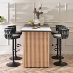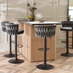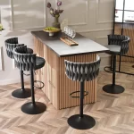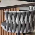 Barska stolica Zoe dolazi u kombinaciji sa okruglim okretnim postoljem koje je i visinski podesivo. Sjedište barske stolice Zoe izrađeno je od baršuna ispletenog u pletenice i dolazi u nekoliko boja.