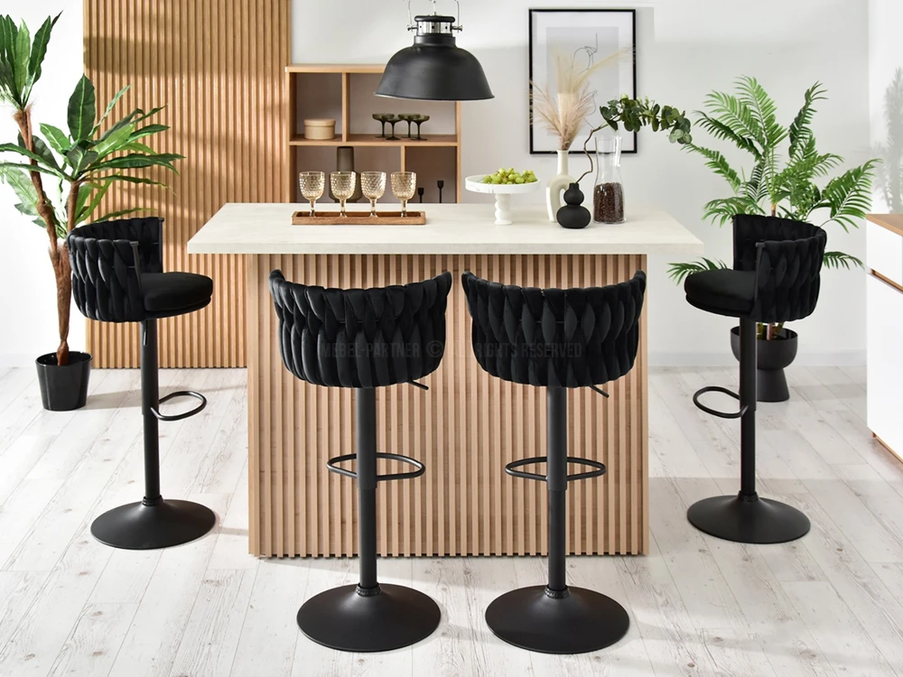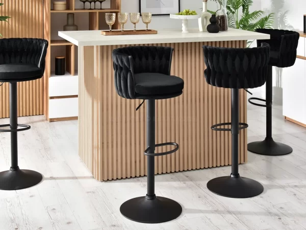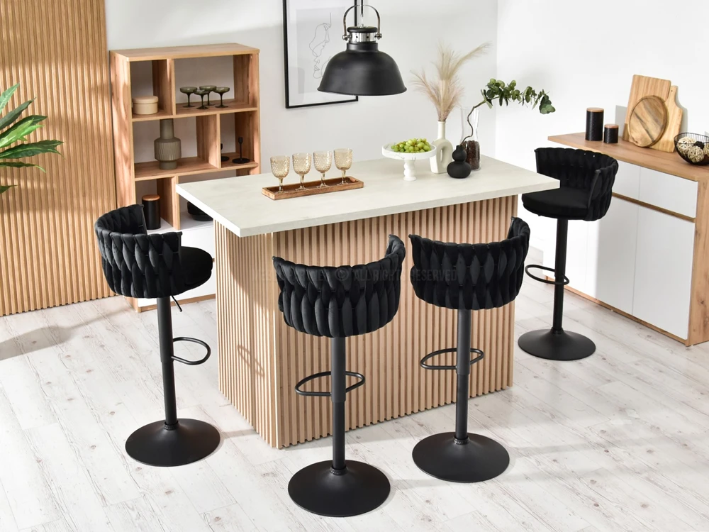 Barska stolica Zoe dolazi u kombinaciji sa okruglim okretnim postoljem koje je i visinski podesivo. Sjedište barske stolice Zoe izrađeno je od baršuna ispletenog u pletenice i dolazi u nekoliko boja.
