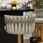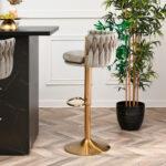 Barska stolica Zoe Gold je moderan i funkcionalan komad namještaja, savršen za mnoge prostore. Zahvaljujući podešavanju visine, može se prilagoditi individualnim željama korisnika. Zbog toga je idealan za visoke kuhinjske otoke, šankove i visoke stolove. Njegova svestranost i elegantan izgled čine ga ne samo praktičnim, već i elegantnim dodatkom raznim interijerima, dajući im moderan i ugodan karakter.