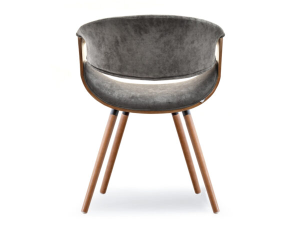 Stolica ozbiljnog karaktera i zanimljivog dizajna izrađena od kvalitetnog drveta i ugodnog baršuna unijeti će u Vaš prostor ljepotu i dozu elegancije.