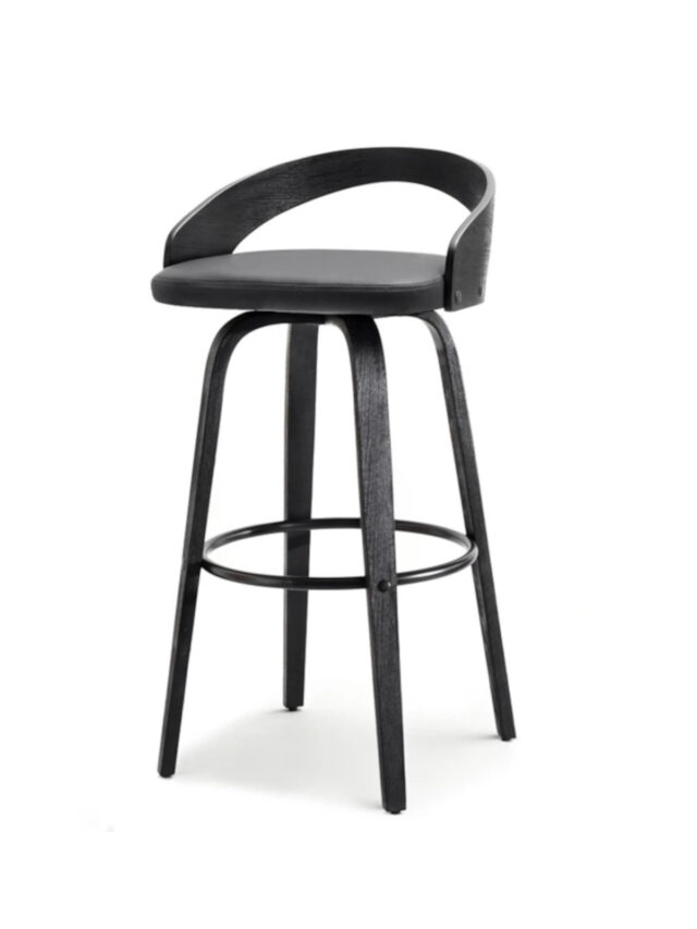 Drvena barska stolica Betty II s crnim eko kožnim sjedištem savršen je izbor za ljubitelje industrijskog stila u blagovaonici.