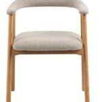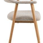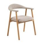 Blagovaonska stolica Addimio s naslonima za ruke model je boho stila s tapeciranim sjedalom i naslonom. Konstrukcija je izrađena je od nauljenog, punog hrastovog drveta. Stabilna baza i savršeno profilirani naslon jamče udobnost sjedenja. Tkanina korištena za sjedala i naslon gusto je tkana u lijepoj i toploj bež nijansi. Zanimljiva tekstura i vrlo gusto tkanje materijala stvaraju savršenu kombinaciju s prirodnim drvenim vlaknima nogu. Maksimalna nosivost stolice iznosi 110kg.