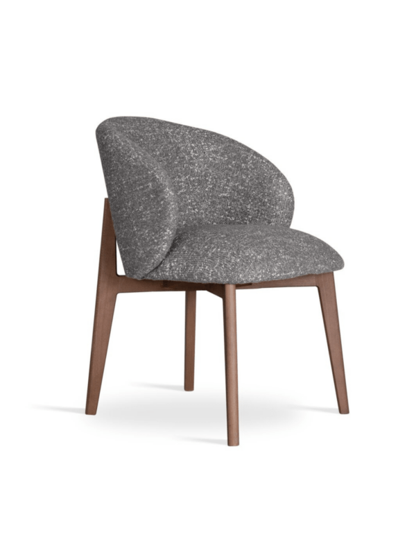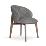 Mekano, tapecirano sjedalo i zaobljeni naslon blagovaonske stolice Almodovar stvaraju ugodan ergonomski model, dok vitka drvena noga koja nježno podupire naslon daje stolici dizajnerski karakter.