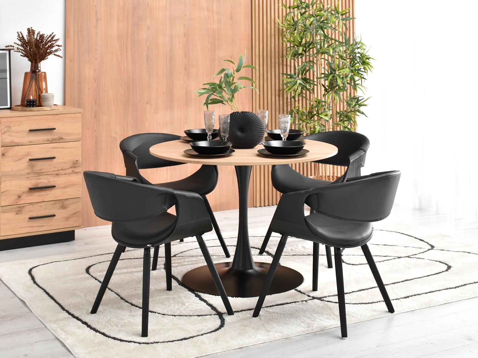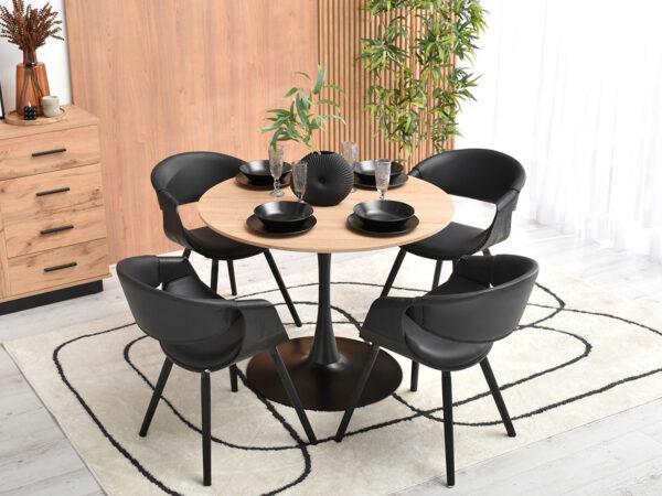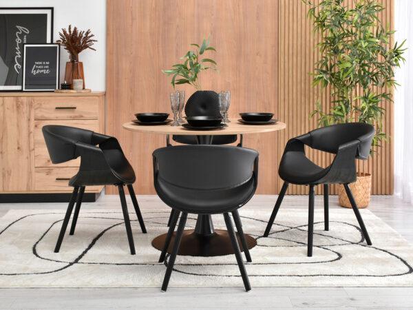 Stolica Betty odlikuje se ne samo jedinstvenim dizajnom, već i iznimnom udobnošću koju nudi korisniku. Stolica se može koristiti u blagovaonici, dnevnoj sobi, uredu ili kao ukrasni element u poslovnom prostoru. Bez obzira na to gdje je smjestite, ne samo da će pružiti udobno mjesto za sjedenje, već će i dodati eleganciju i otmjenost cijelom prostoru. Savijeno drvo u elegantnoj nijansi crne zajedno sa eko kožom daje bezvremenski, minimalistički izgled koji savršeno pristaje uz klasičan i moderan dekor prostorija.