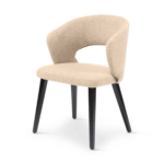 Blagovaonska stolica Bob ima okrugli naslon s otvorom na dnu i udobne naslone za ruke.