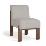 Blagovaonska stolica Braga elegantna je tapecirana stolica dizajnirana za sofisticirane interijere. Njezin geometrijski oblik poduprt četirima drvenim nogama stvara kohezivan oblik, dok nedostatak naslona za ruke daje lagan i bezvremenski karakter.