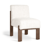 Blagovaonska stolica Braga elegantna je tapecirana stolica dizajnirana za sofisticirane interijere. Njezin geometrijski oblik poduprt četirima drvenim nogama stvara kohezivan oblik, dok nedostatak naslona za ruke daje lagan i bezvremenski karakter.