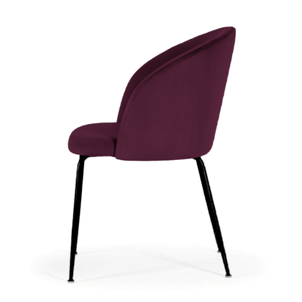 Školjkasto sjedalo stolice Bruna pruža udobnost sjedenja i presvučeno je baršunastom tkaninom ugodnom na dodir. Noge su izrađene od crnog i hrastovog metala. Sve to stvara lijepu, čvrstu, izdržljivu i udobnu stolicu.