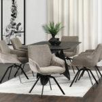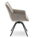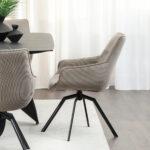 Blagovaonska stolica Cassel ističe se svojim mehanizmom za okretanje od 360°, odnosno okretnim sjedištem, koje pruža udobnost i slobodu kretanja. Stabilne, crne noge geometrijskog oblika dodaju modernost i ističu se u odnosu na klasično sjedalo. Izvrstan je izbor i za ured i za modernu blagovaonicu, kombinirajući udobnost s estetikom.