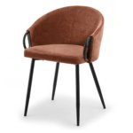Blagovaonska stolica Claire elegantan je model prepoznatljiv po decentnim ručkicama za pomicanje ukorporiranima u rukonaslone, kao i strukturalnom tkaninom. Konstrukcija je crna, što u kombinaciji s mekim materijalima stolici pruža dodatan sjaj.