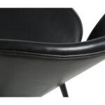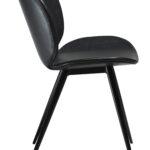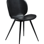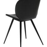 Ova moderna stolica ima jednostavnu, ali upečatljivu formu sa zaobljenim rubovima sjedala i elegantnim, stožastim nogama koje pridonose jednostavnosti dizajna. Stolica dolazi sa crnim metalnim nogicama dok je naslon presvučen umjetnom kožom crne boje.