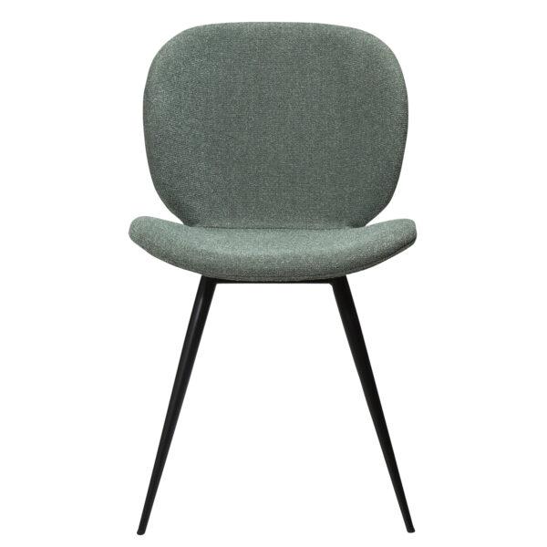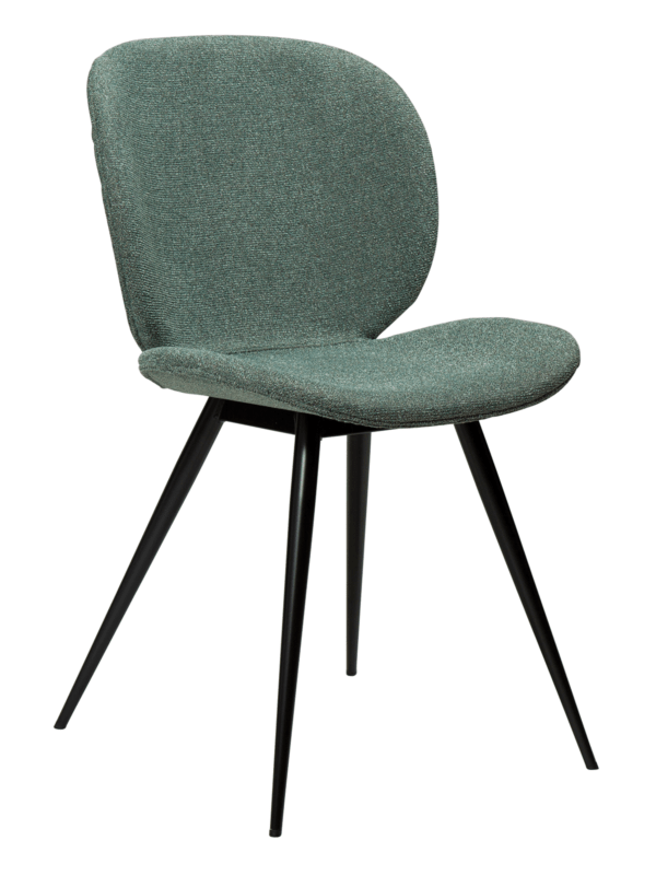 Ova moderna stolica ima jednostavnu, ali upečatljivu formu sa zaobljenim rubovima sjedala i elegantnim, stožastim nogama koje pridonose jednostavnosti dizajna. Stolica dolazi sa crnim nogicama dok je naslon presvučen boucle tkaninom šljunčano zelene boje.