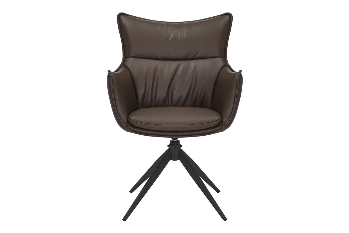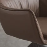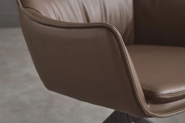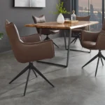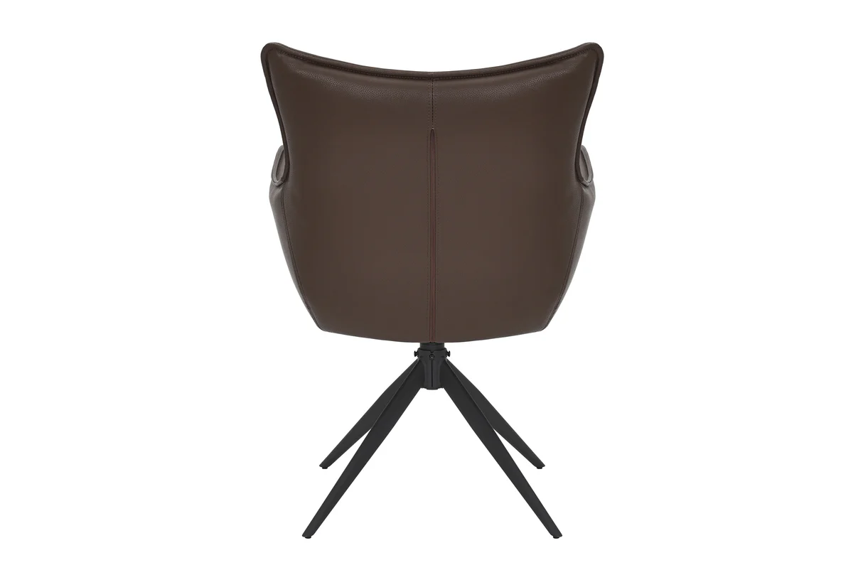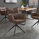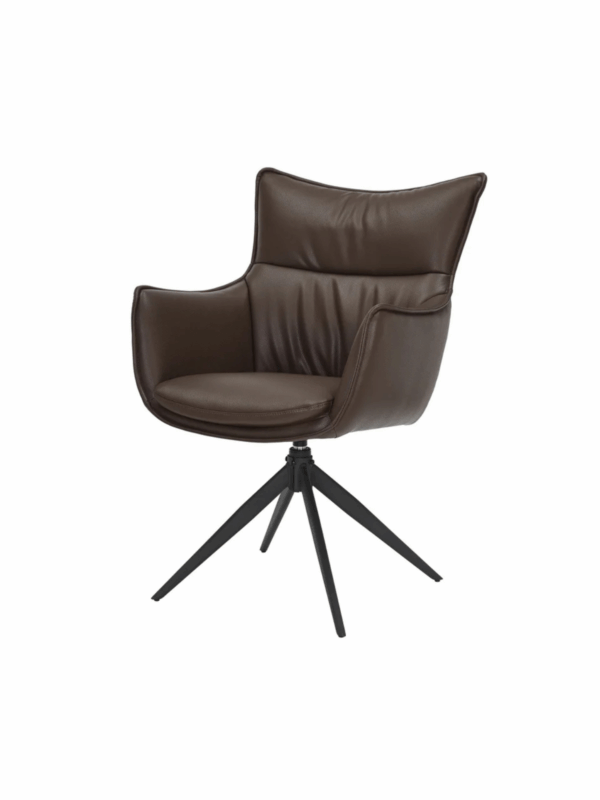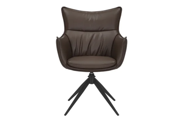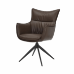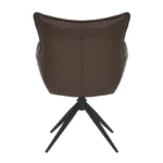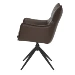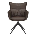 Predstavljamo vam okretnu blagovaonsku stolicu Coco, vaš novi izbor za udobnost i eleganciju u bilo kojem prostoru. Tapecirana elegantnom smeđom umjetnom kožom i s čvrstim crnim metalnim okvirom, ova stolica ostavlja dojam, a istovremeno je izuzetno praktična.