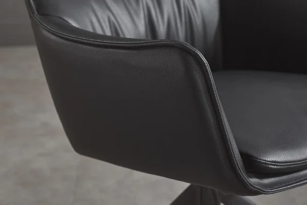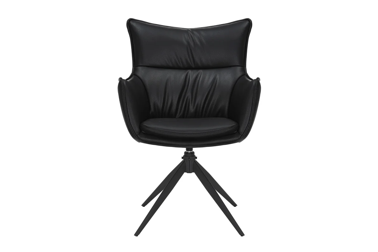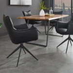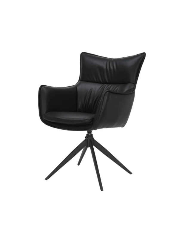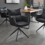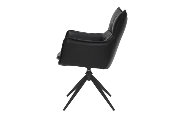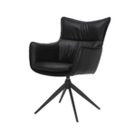 Predstavljamo vam okretnu blagovaonsku stolicu Coco, vaš novi izbor za udobnost i eleganciju u bilo kojem prostoru. Tapecirana elegantnom umjetnom kožom i s čvrstim crnim metalnim okvirom, ova stolica ostavlja dojam, a istovremeno je izuzetno praktična.