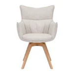 Pripremite se unijeti svježinu u svoj prostor s okretnom blagovaonskom stolicom Coco! Prekrasno bež sjedalo savršeno se slaže s nogama od prirodnog hrasta, dajući vašoj sobi dašak klasične elegancije.