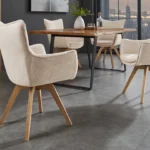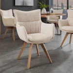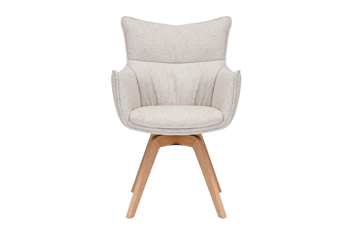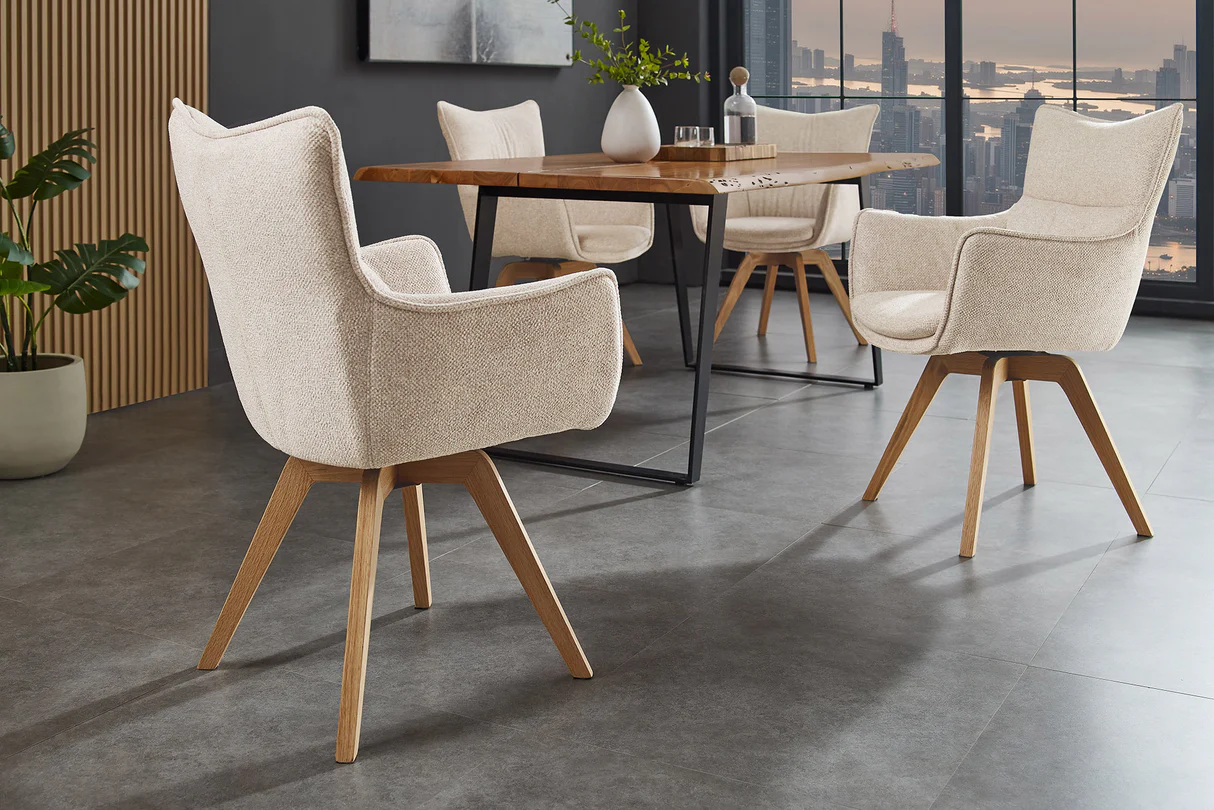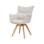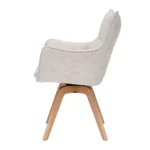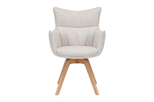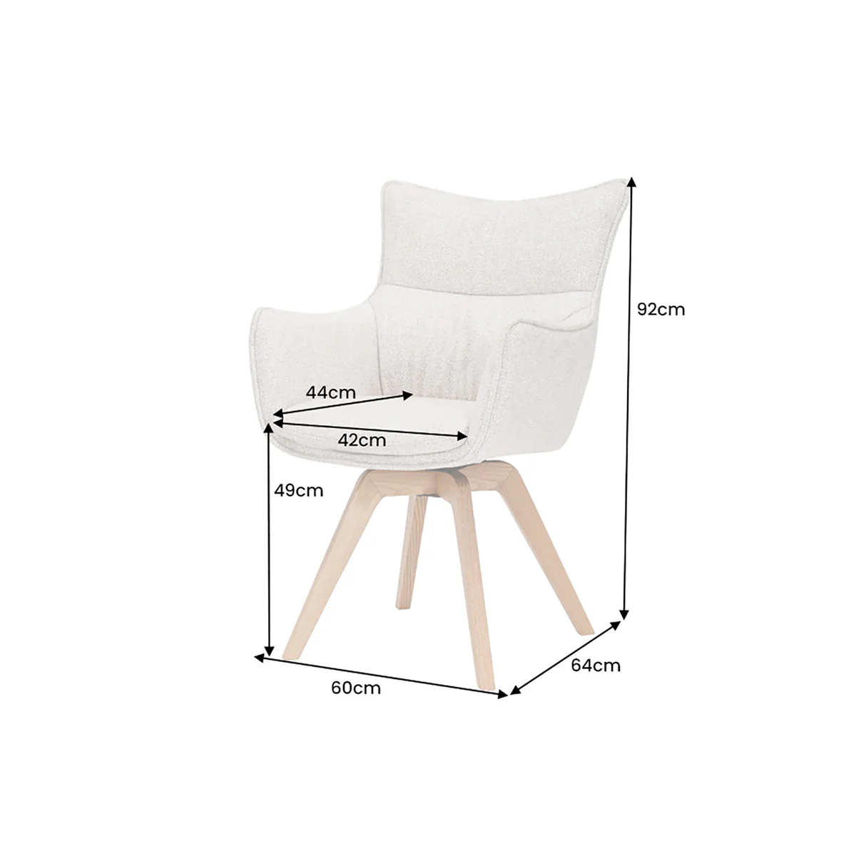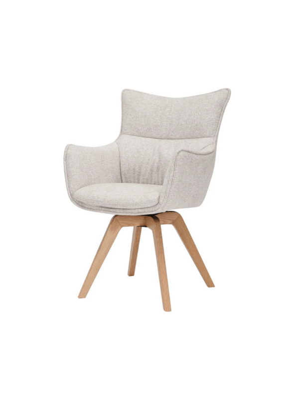 Pripremite se unijeti svježinu u svoj prostor s okretnom blagovaonskom stolicom Coco! Prekrasno beige sjedalo savršeno se slaže s nogama od prirodnog hrasta, dajući vašoj sobi dašak klasične elegancije.